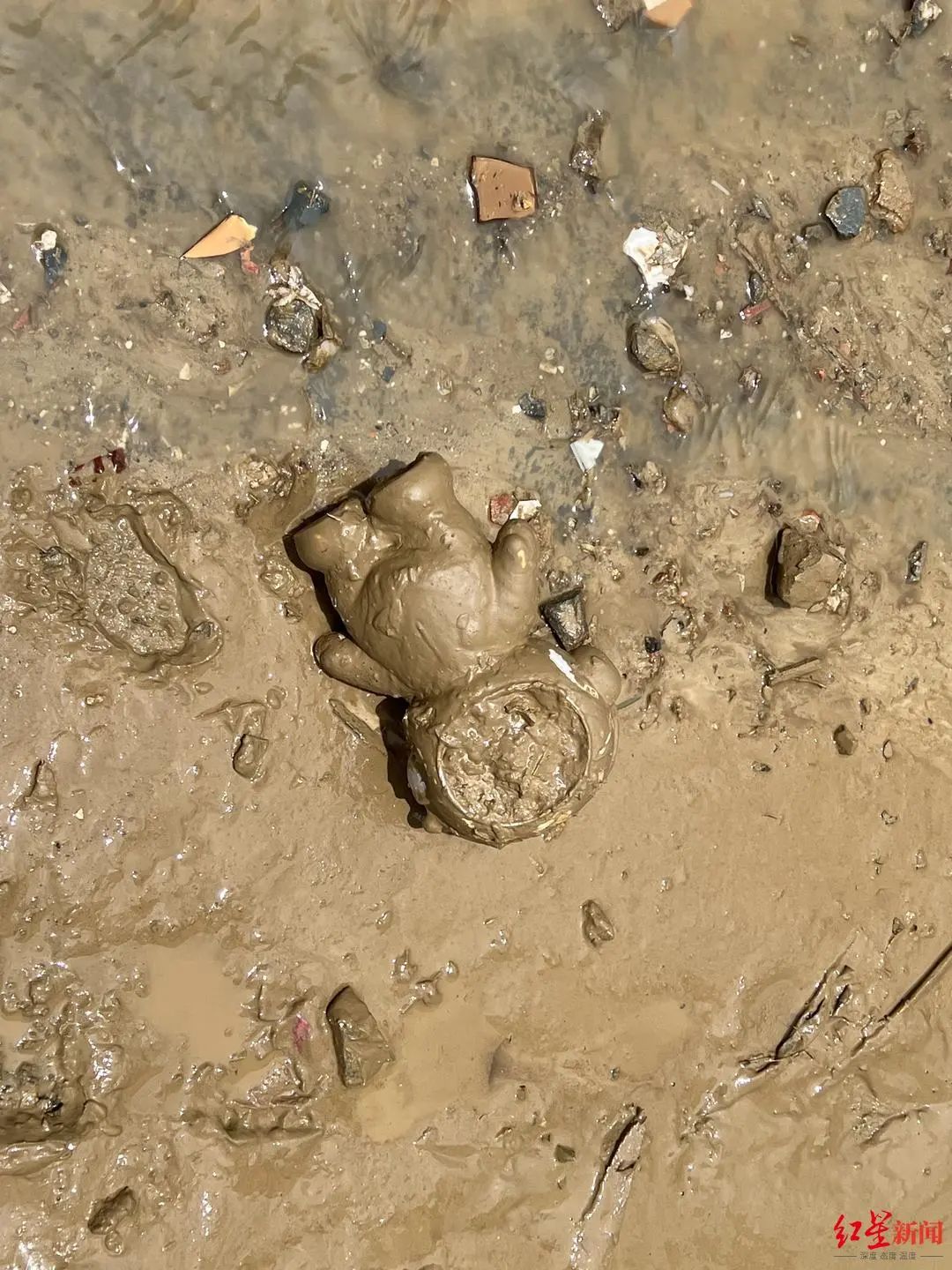 散落街边淤泥中的玩具