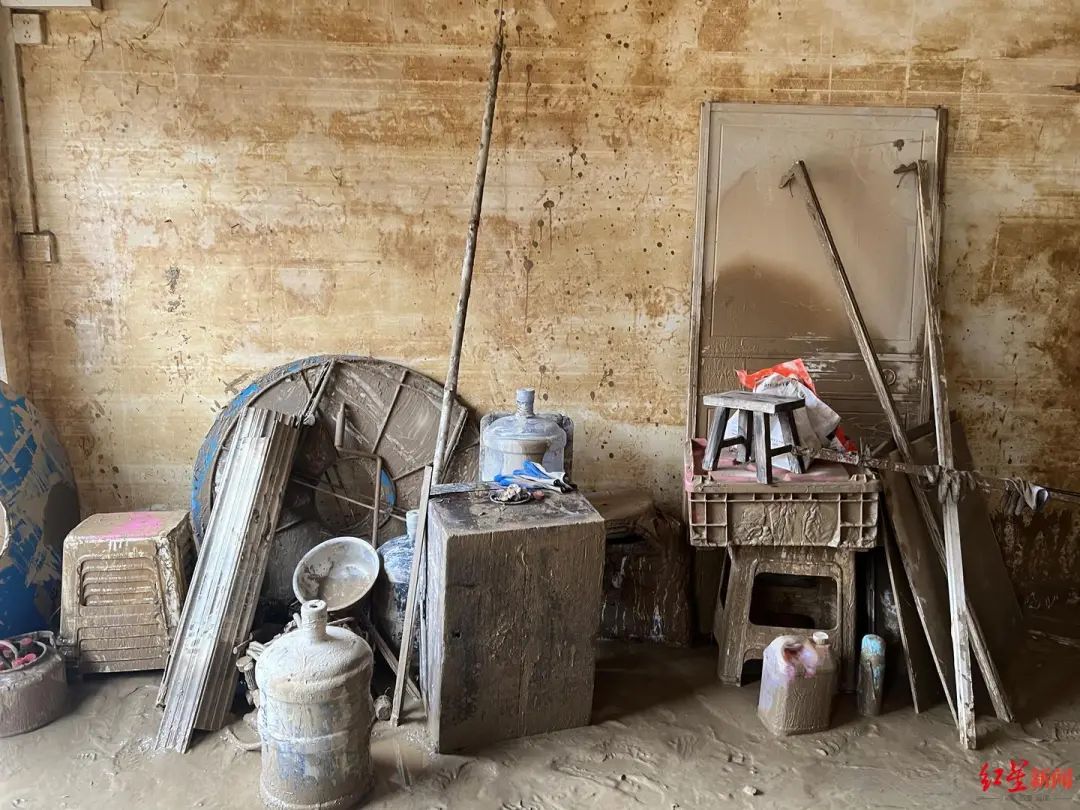今年的两次洪水,都漫过了他们的楼。第一次洪水,淹没了二楼;第二次洪水只淹到了一楼,但之前做的清淤工作基本白费,甚至一台清出来摆在外面的洗衣机也被水流冲走。