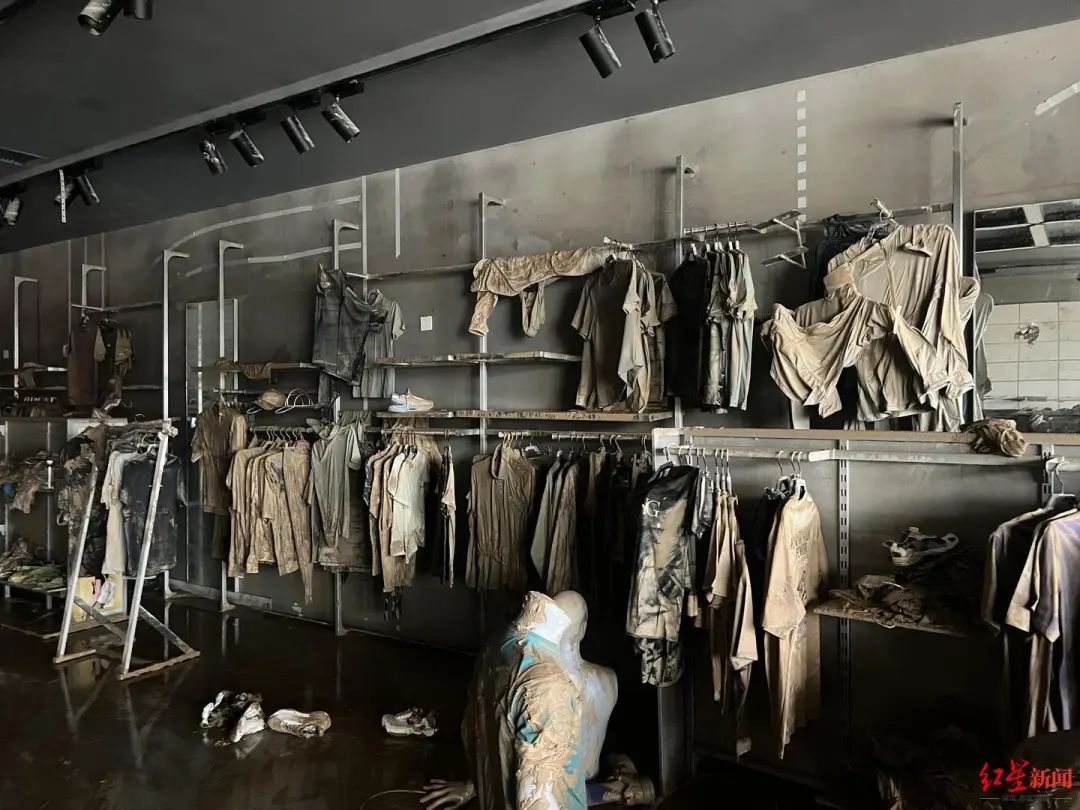 葛江的损失更大,他在常驰广场负一楼开了3家服装店,店里受损严重,挂在衣架上的衣服被淤泥覆盖,分辨不出原本的颜色。