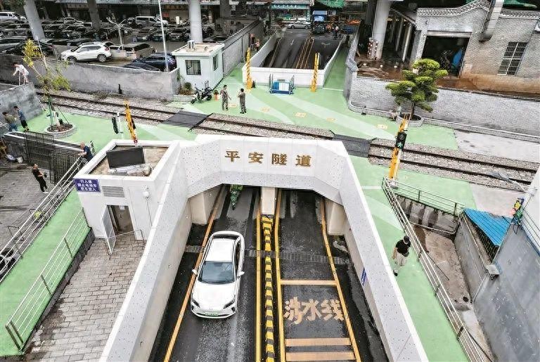 黎明辉提及的这条隧道,是位于白云区景泰街柯子岭村铁路下方的“平安隧道”,始建于1998年。设计之初,是为了解决周边村民安全横穿铁路的日常通行需求。由于地理位置的独特性和通行便利性,平安隧道逐渐成为机动车的通行要道,车流量、人流量不断增加。平安隧道是连接云城东路与白云大道南的交通要道,黎明辉每天开车经过隧道上下班,能节省十几分钟。然而,此前,隧道内车道最窄处不足2.2米,驾驶通行难度大;且隧道“头宽身窄”的特殊形态,不熟悉情况的车主时常被卡在半月弯位。