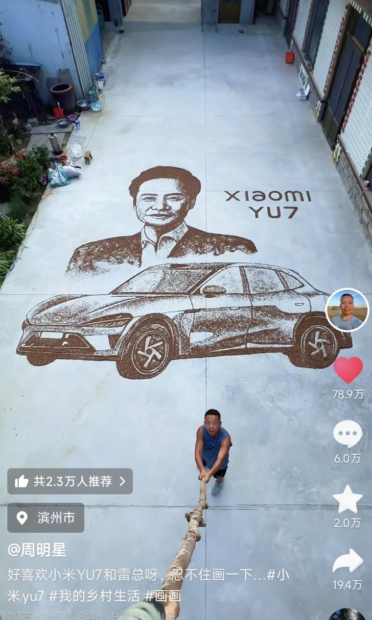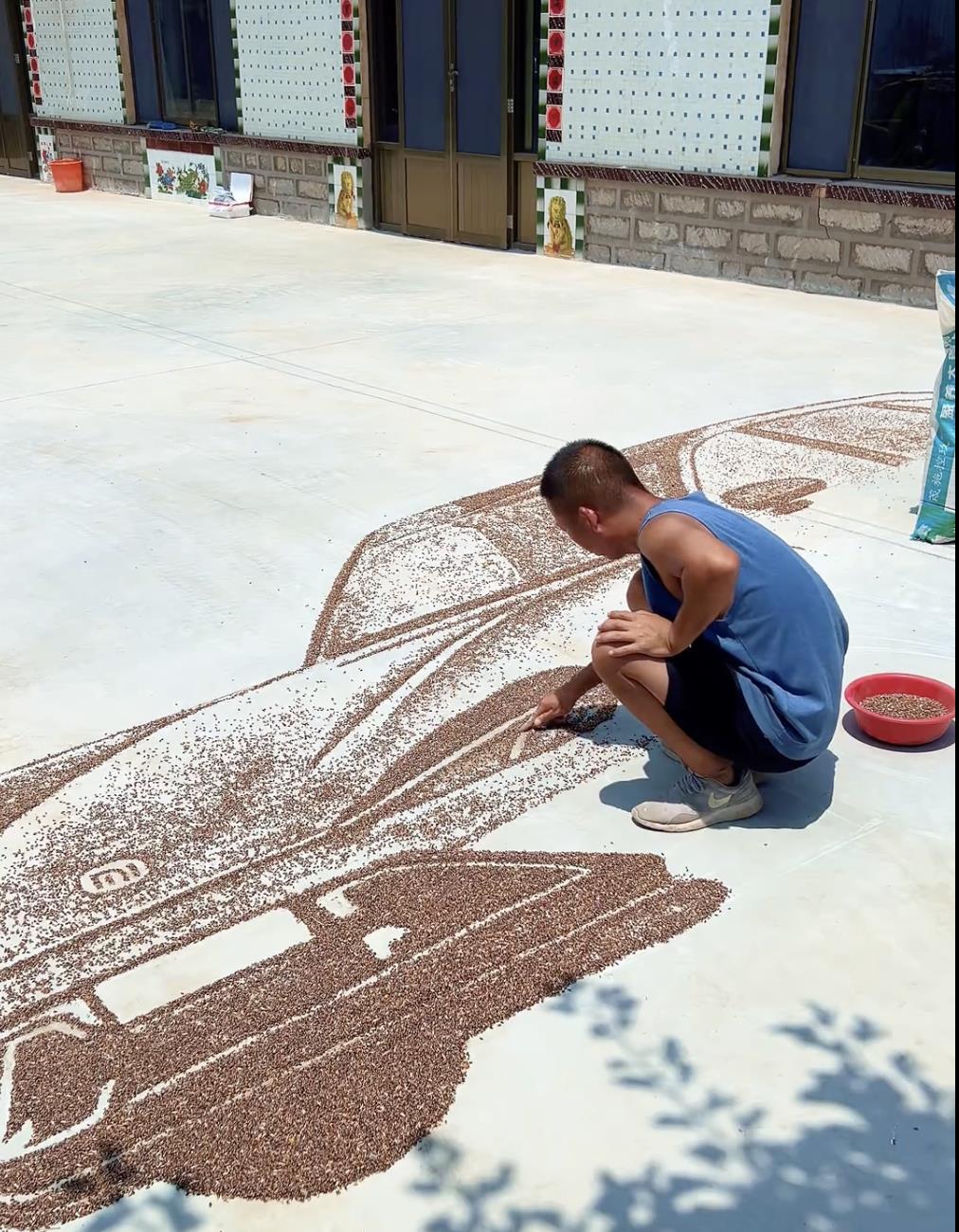 6月30日,一幅小米YU7麦粒绘画作品走红网络,受到广大网友们的喜爱。7月1日,极目新闻记者采访了解到,这是33岁的绘画博主“周明星”蹲伏近8小时,在自家院落的水泥地上用麦粒拼出来的。