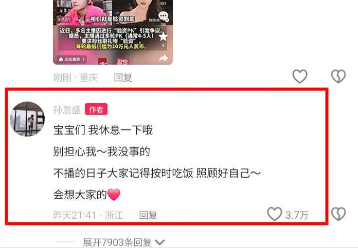 △直播验资参与者之一孙恩盛留言宣告暂停直播
