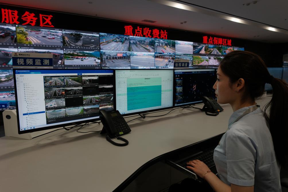 蜀道集团路网中心里,工作人员实时监测道路通行情况。 新华社记者萧永航 摄