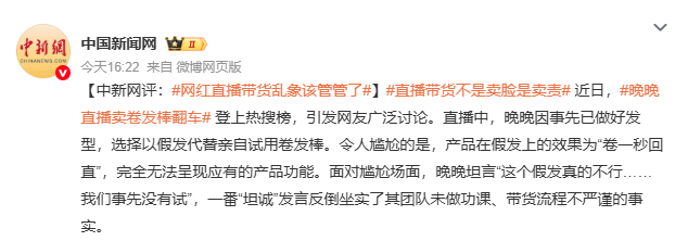 实际上,晚晚的失误并非个案。此前,网红带货“翻车”事件屡见不鲜:产品质量不过关、虚假宣传、售后无保障……直播间里光鲜亮丽的滤镜背后,问题频发,已引起平台与监管部门的重视。
