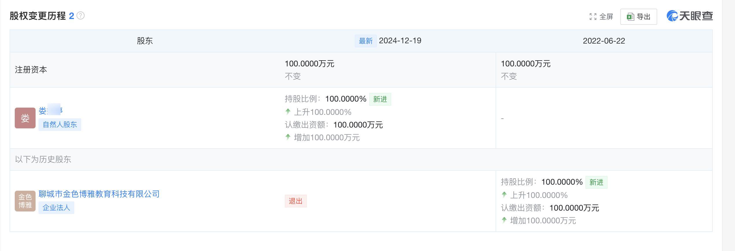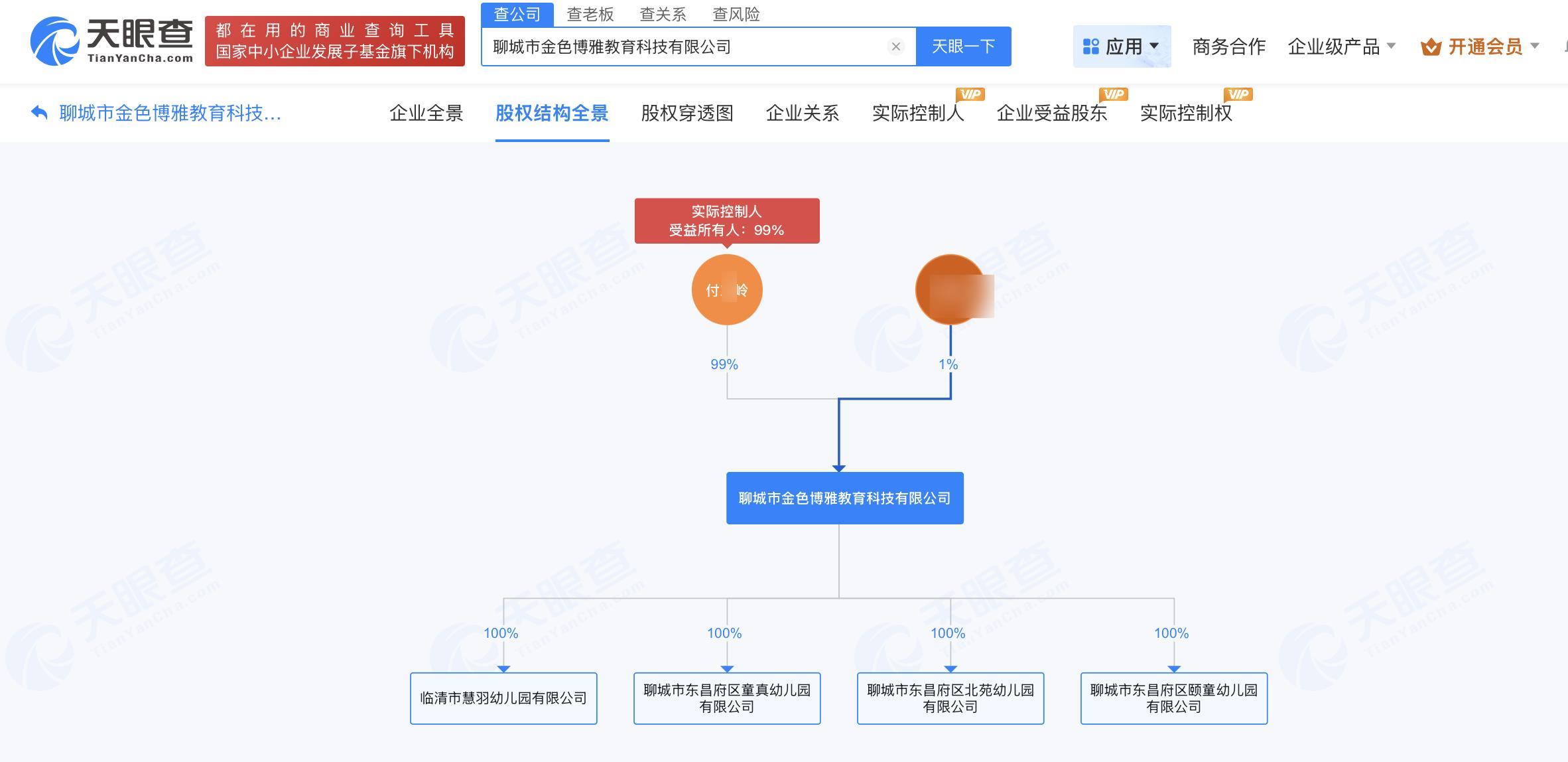 天眼查显示,2024年12月19日,聊城高新技术产业开发区堇色童年幼儿园有限公司发生股权变更,股东由聊城市金色博雅教育科技有限公司变为娄某婷。而聊城市金色博雅教育科技有限公司法定代表人为付某岭,在付某岭名下,他在聊城还有多家幼儿园。家长们表示,付某岭就是堇色童年幼儿园的背后老板。