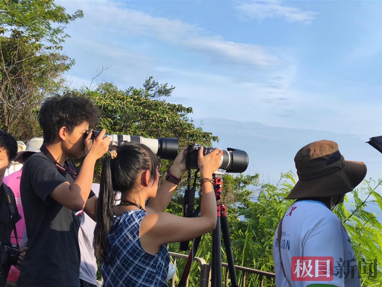 记者来到观赏点看到,附近特意设置了警戒线,有警察正在维持秩序。虽然天气炎热,海岸边观赏航母的市民游客人数仍非常多,里三层外三层挤满了过道。许多市民有备而来,三脚架、长焦相机、望远镜……长枪短炮齐上阵。