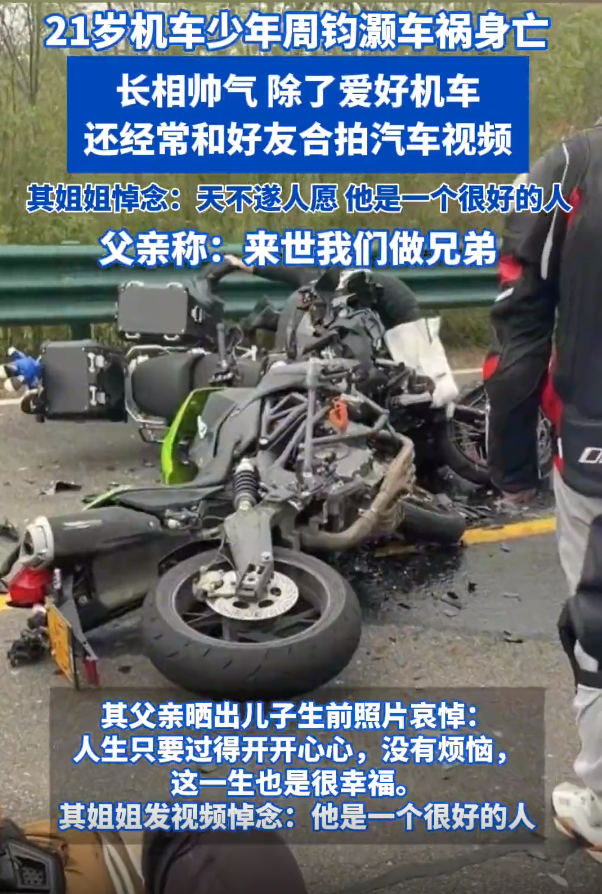 据@津云新闻 7月4日报道,21岁机车网红周钧灏于2025年6月21日凌晨因意外车祸去世。