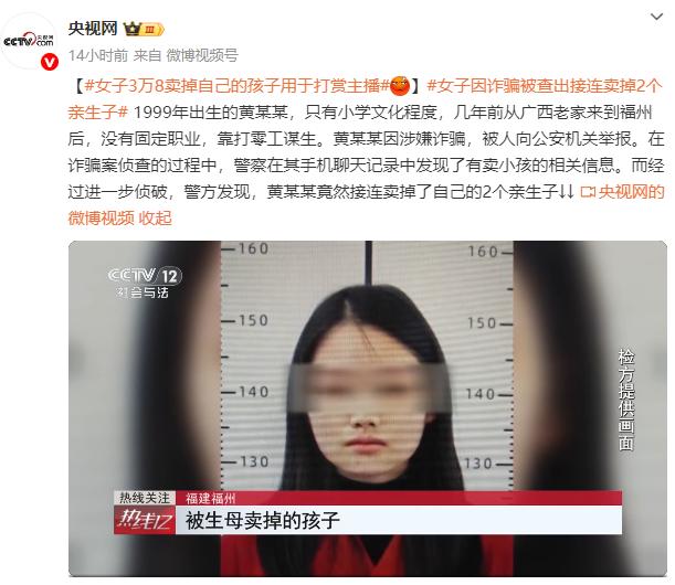 1999年出生的黄某某,只有小学文化程度,几年前从广西老家来到福州后,没有固定职业,靠打零工谋生。黄某某因涉嫌诈骗,被人向公安机关举报。在诈骗案侦查的过程中,警察在其手机聊天记录中发现了有卖小孩的相关信息。而经过进一步侦破,警方发现,黄某某竟然接连卖掉了自己的2个亲生子。