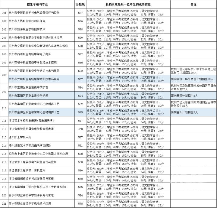 以下为杭州市“2025年中职与本科一体化人才培养招生”各招生学校最后一位录取考生的投档信息: