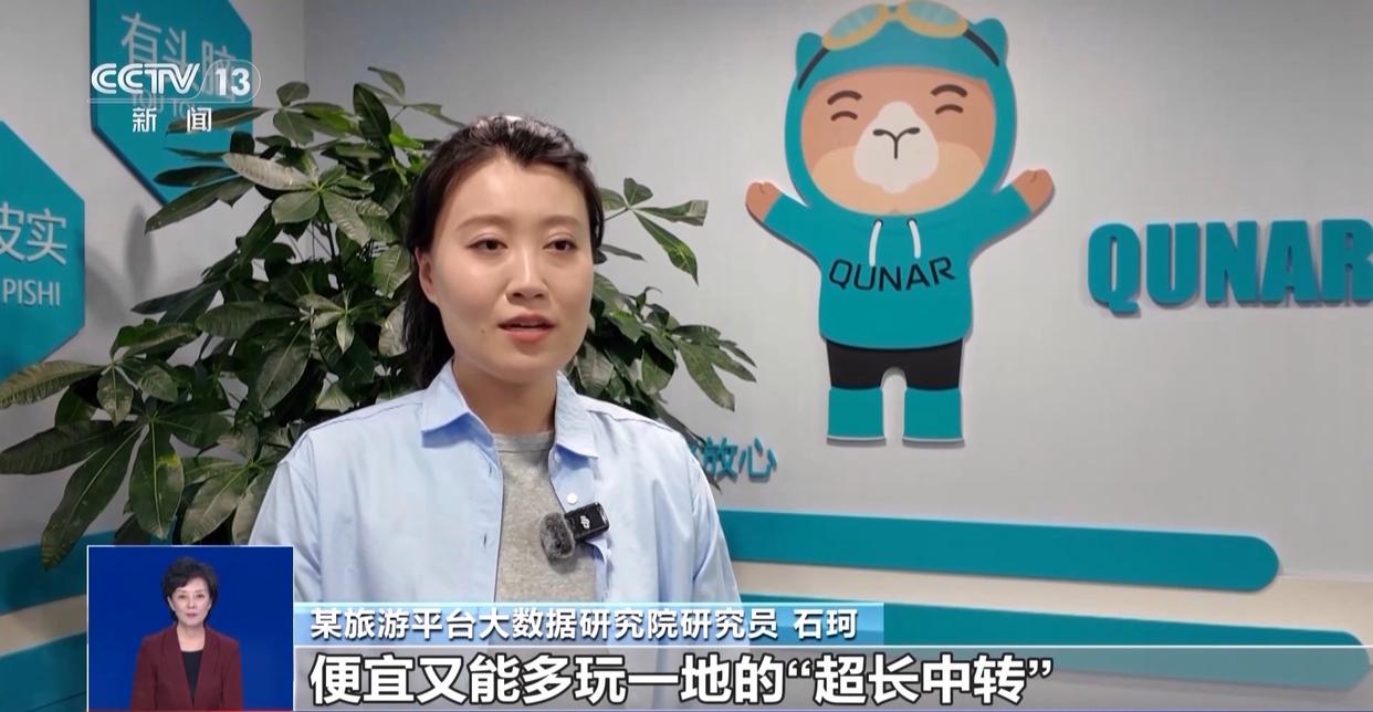 某旅游平台大数据研究院研究员 石珂:值得一提的是,便宜又能多玩一地的“超长中转”国际机票产品,今年暑期同样受欢迎。去哪儿数据显示,部分出境中转机票比直飞都要便宜四成左右,平台上出境游中转航班预订量同比增长30%。