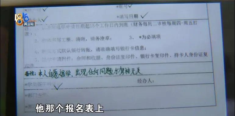汪女士:谁知道他拿那个表是干嘛啊,他那个报名表上是没有盖章的,什么东西都没有,我怎么相信他呢对不对。就很简单,我给你个空白的合同让你去签,你签不签,对不对。