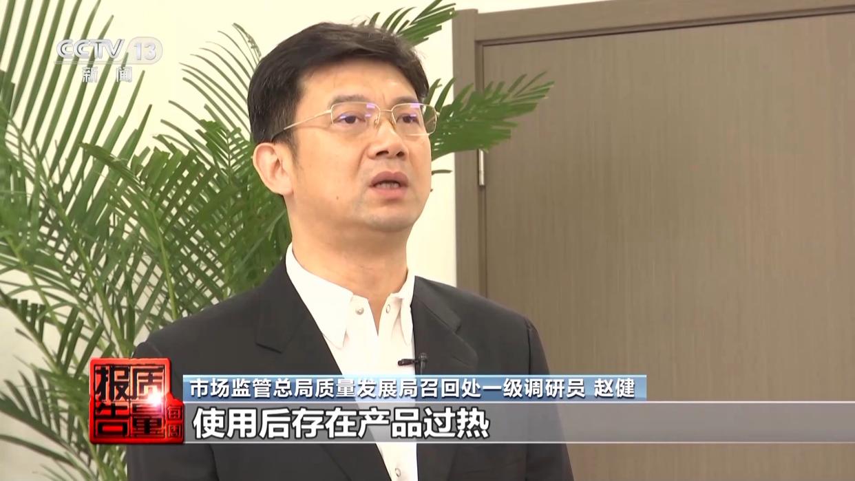 市场监管总局质量发展局召回处一级调研员 赵健:召回原因为电池在生产过程中混入金属异物,多次充放电,使用后存在产品过热甚至燃烧的安全隐患。
