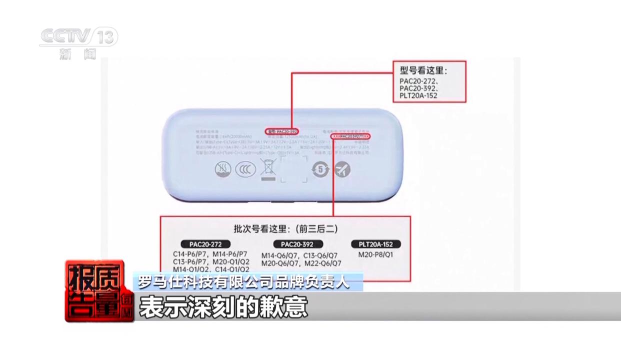 罗马仕科技有限公司品牌负责人:我想借此次机会对这次事件给消费者带来的损失表示深刻歉意。所有有问题的产品,我们尽量开通所有的召回渠道,帮助消费者顺利地把这些产品召回。