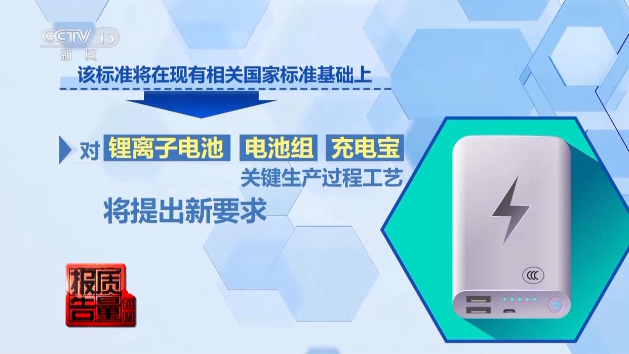 该标准将在现有相关国家标准基础上,新增或者加严过充电、针刺、挤压、热滥用等试验要求;同时准备提出正负极材料、隔膜、电解液等直接影响电池安全的关键材料要求;对锂离子电池、电池组、充电宝的关键生产过程工艺,也将提出新要求。