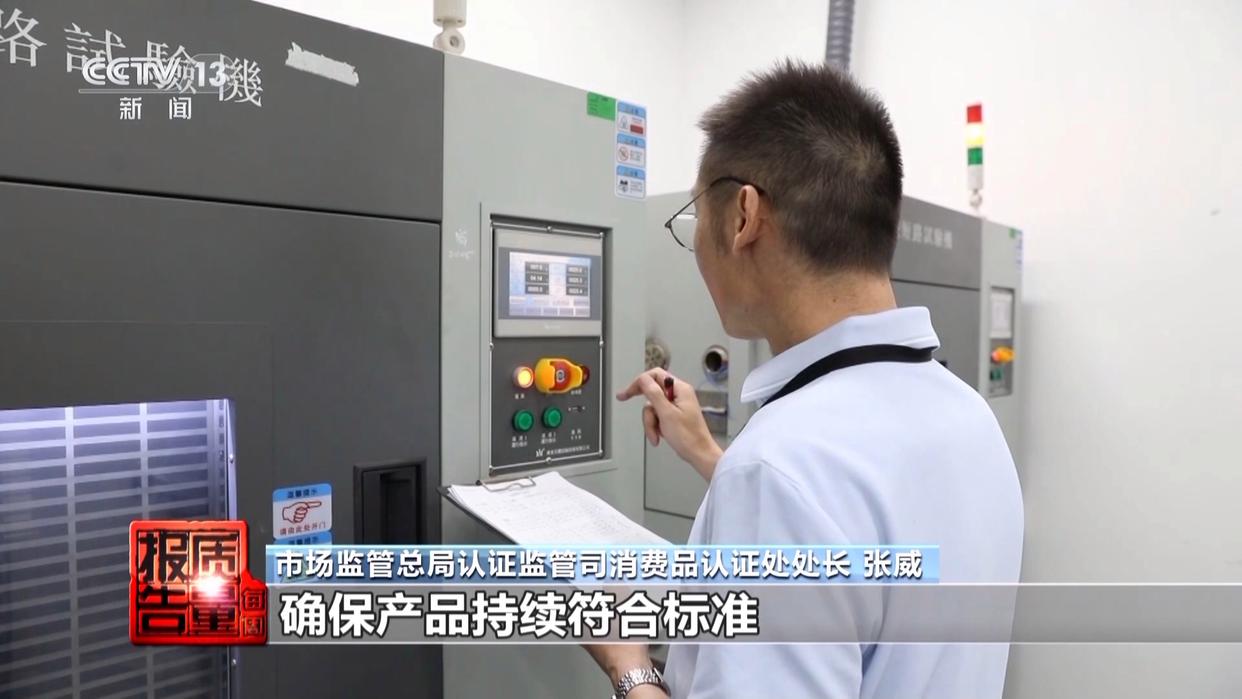 市场监管总局认证监管司消费品认证处处长 张威:对充电宝的充放电温度控制,还有高温外部短路、跌落挤压等关键安全指标,我们进行严格的测试。同时对企业的质量保证能力,产品一致性开展检查,确保产品持续符合标准和CCC认证的要求。