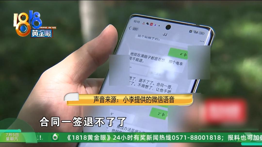 小李:签完之后我们下楼,就感觉不像是招聘的,就像是租车的,感觉就像套路。网上搜了确实是这样,当时就提出来了。因为他说随时不干随时联系他,就跟他说不想干了。他发语音特别嚣张,退不了了,签完就退不了了。