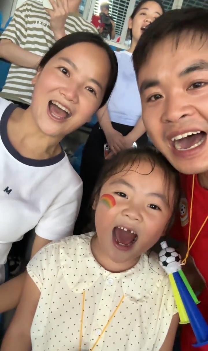 6月21日,一家三口现场观看常州队主场比赛(视频截图)