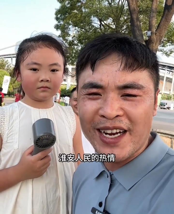 7月6日晚,苏超常州队客场挑战淮安队的比赛,曾引发全网关注的“外卖箱宝宝”李霏儿也牵着父母的手进场观看。