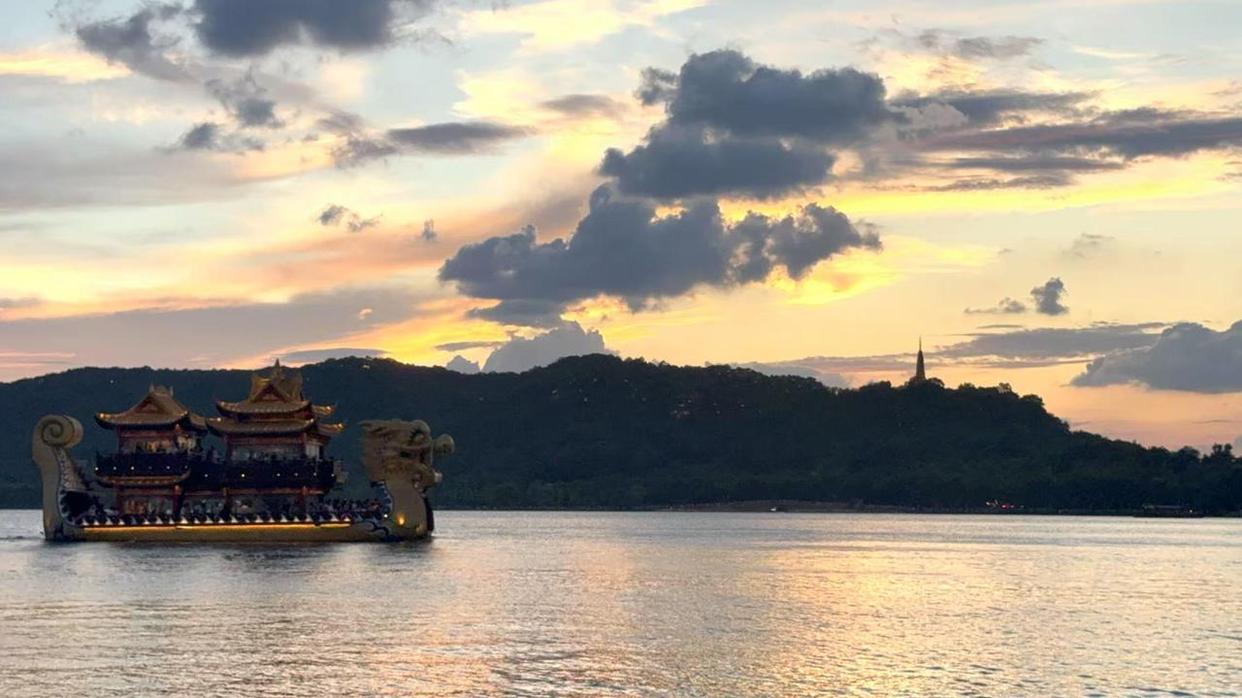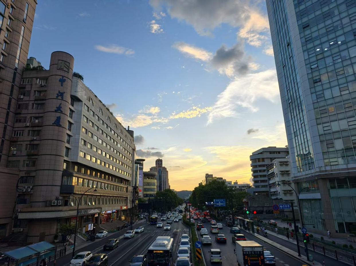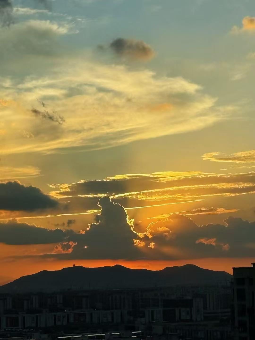杭州焦女士拍到的晚霞中云朵镶上了金边。