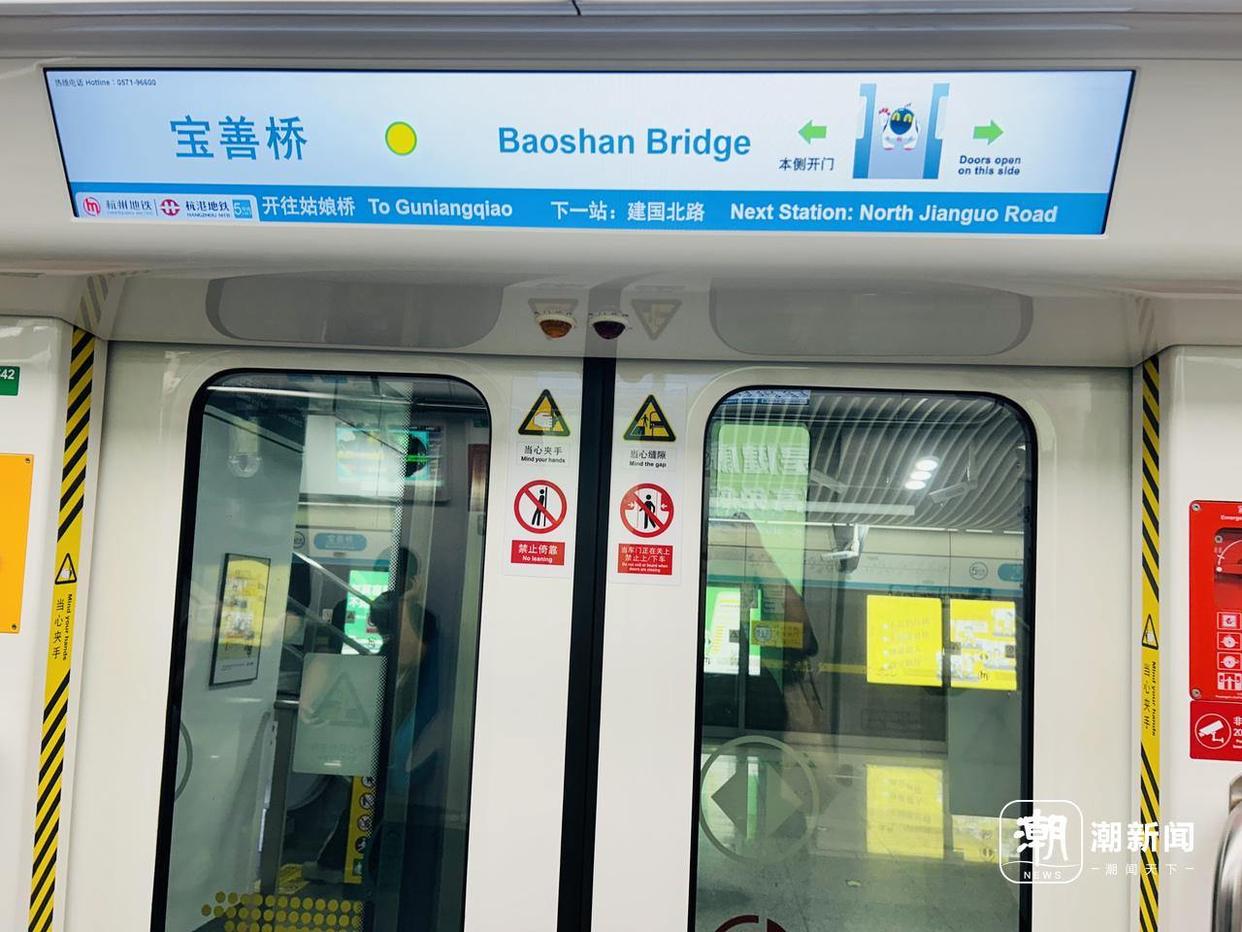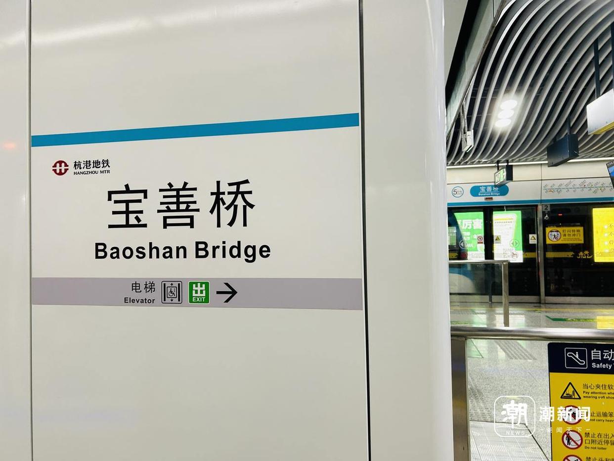 杭州地铁5号线宝善桥站,无论是站台上关于站名的英文翻译,还是列车车厢里关于下一站到达的英文提醒,均显示“Baoshan Bridge”。
