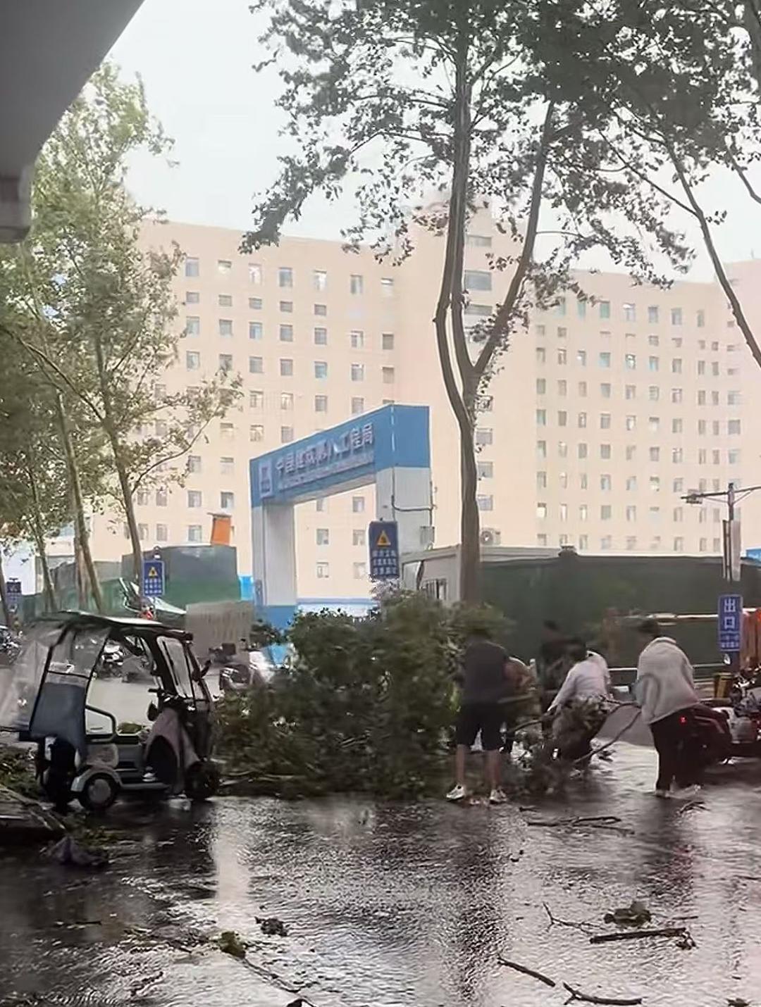 济南市历下区的赵先生告诉红星新闻记者:“雨下了得有两个多小时,刚刚还大太阳,不一会就乌云密布,风特别大。我当时骑着摩托车赶紧找地方避雨,随后就看到我旁边的树被刮倒了,差点砸到我。”
