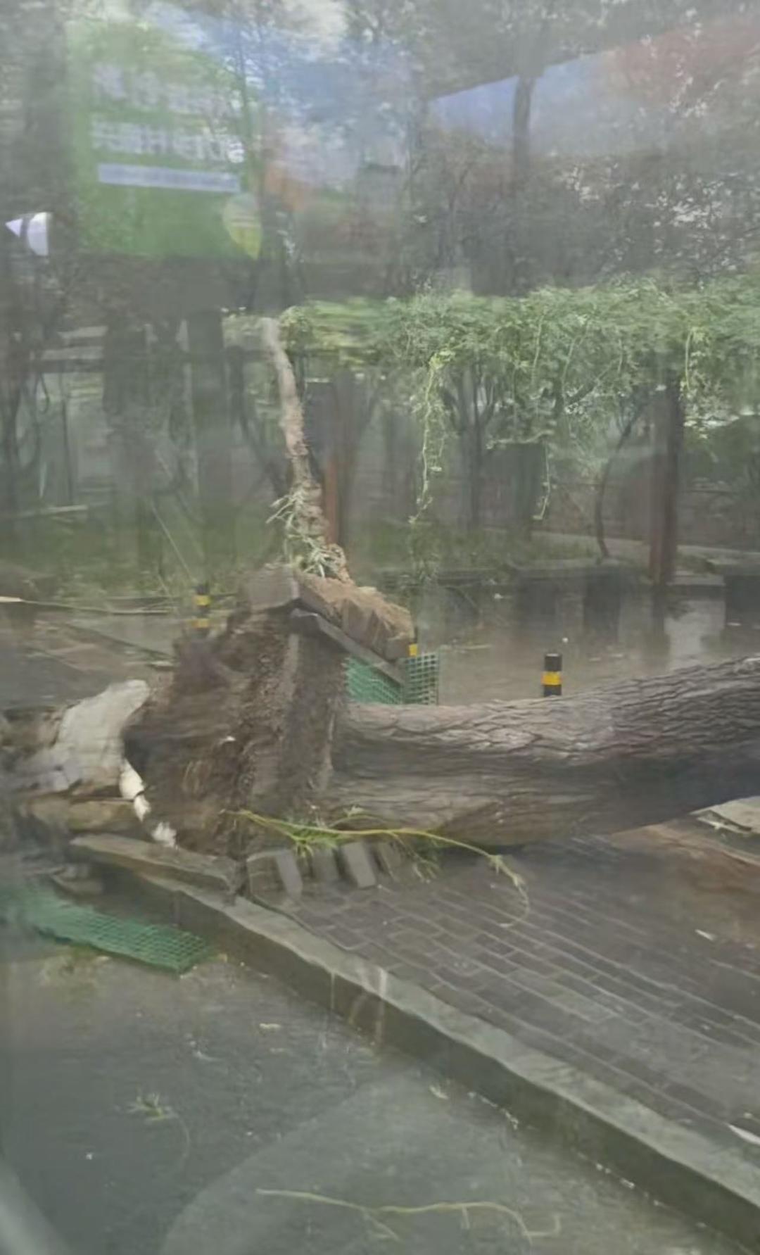 赵先生说,大概不到10分钟,路上的水就漫过脚脖子了,“等了大概一小时,雨小了我就往回赶,路边很多碗口粗的树被刮倒了。”