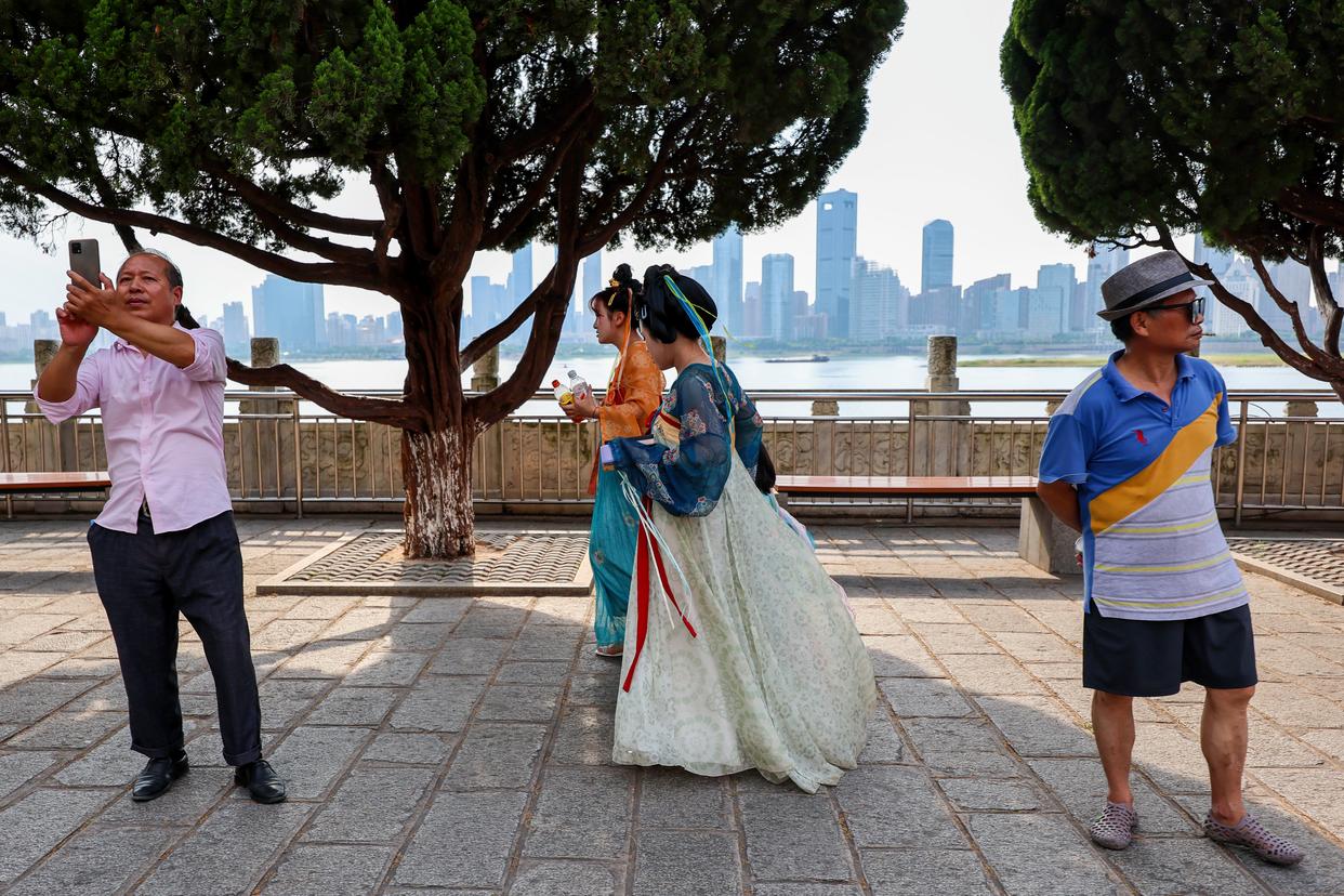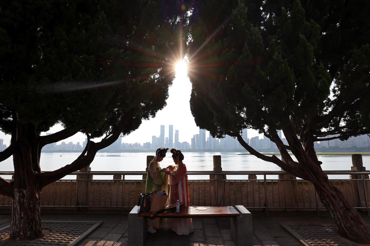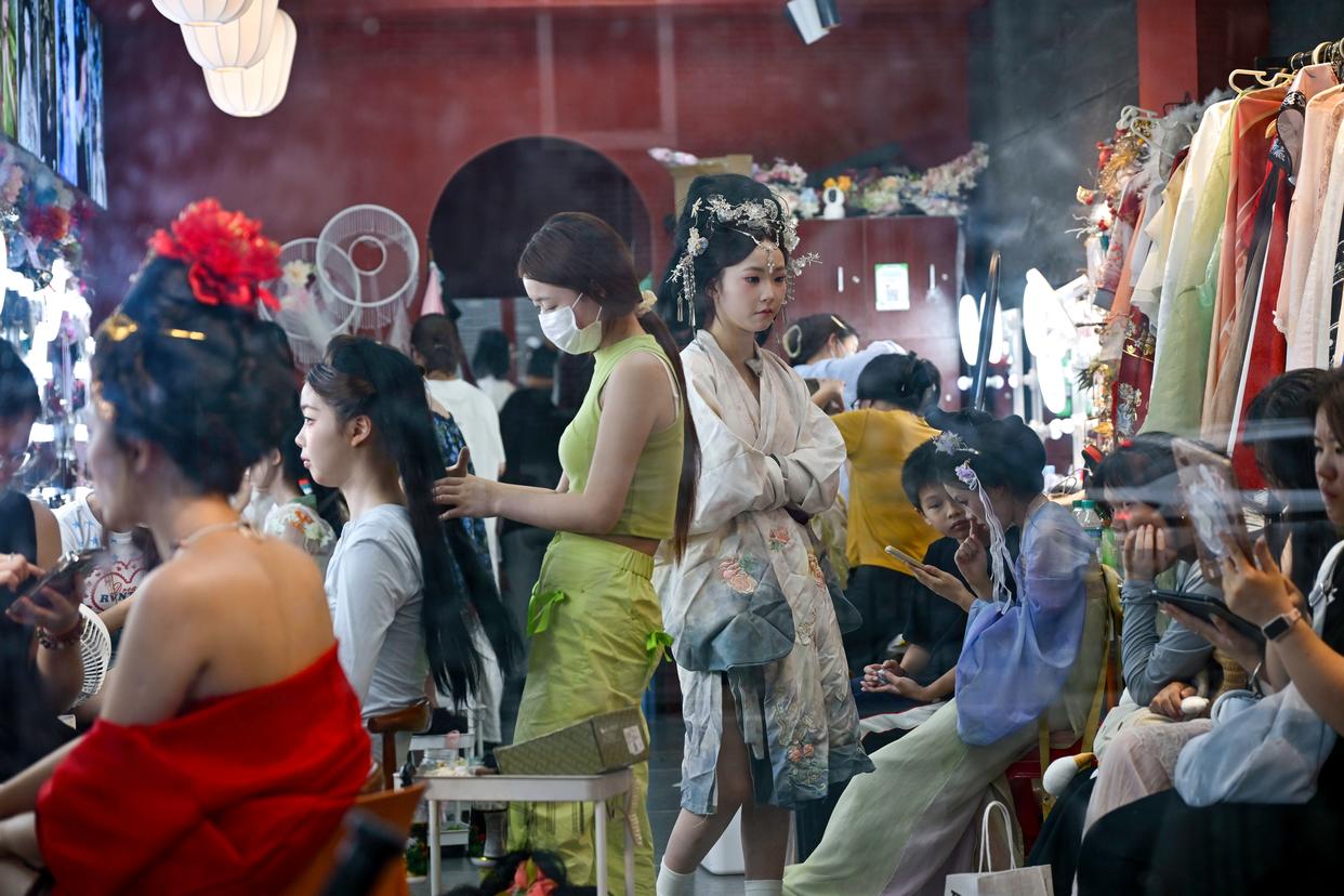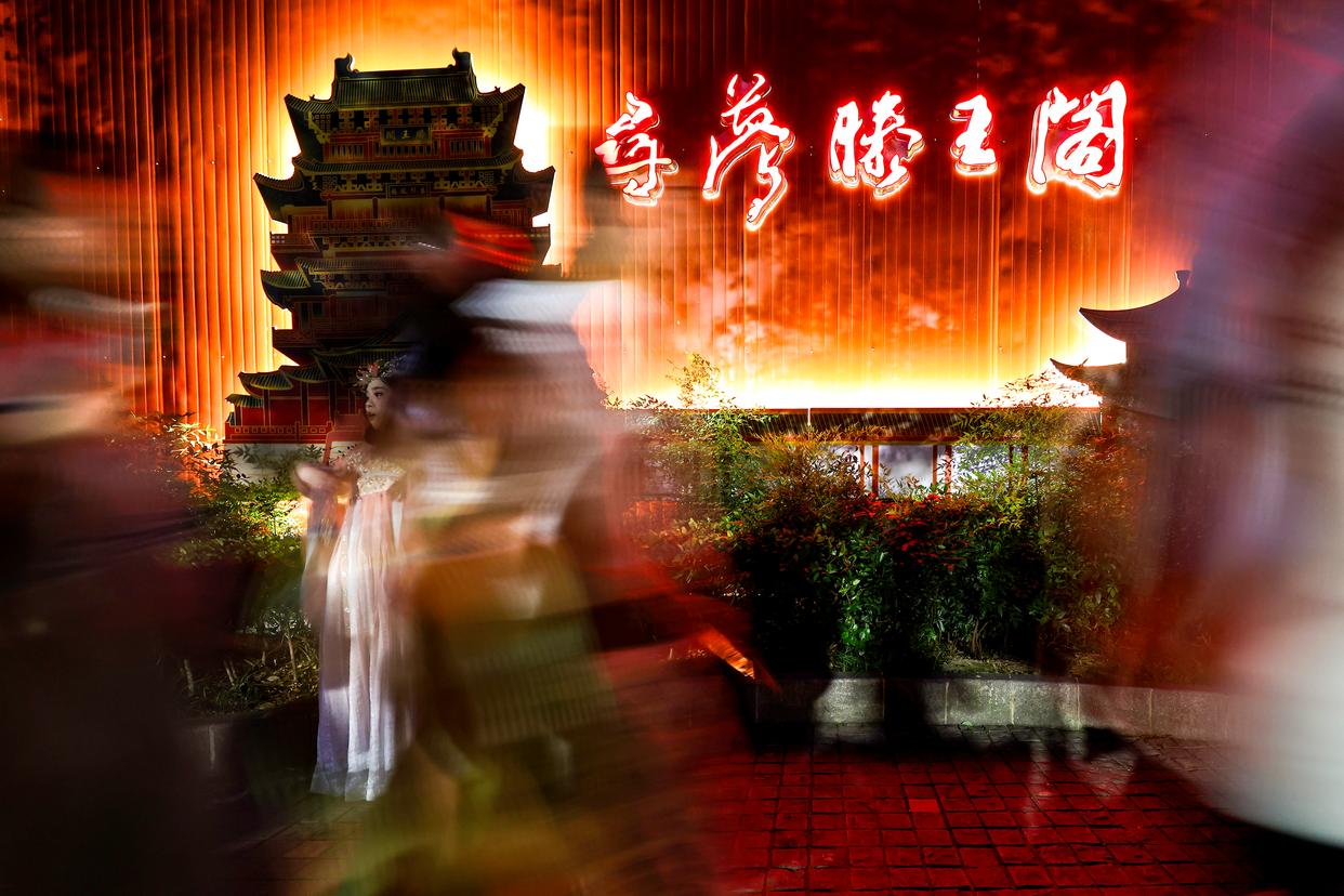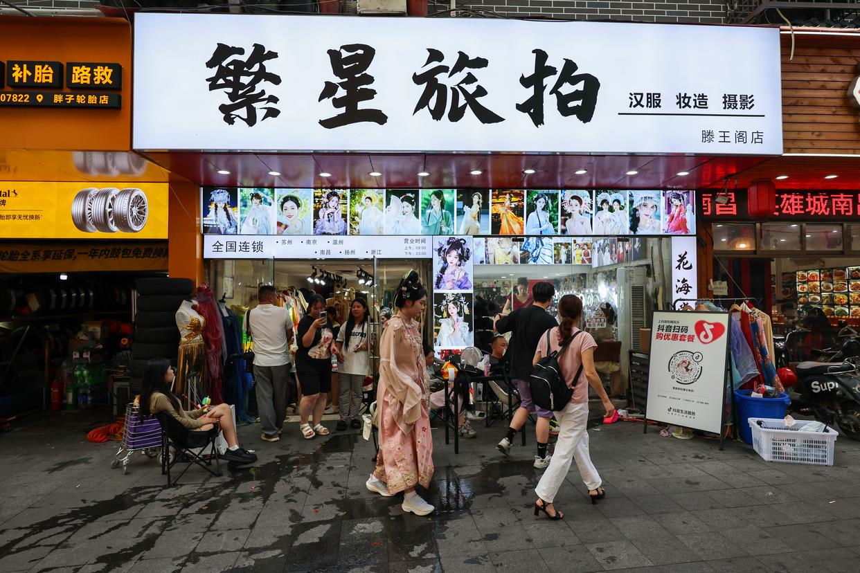 7月7日,傍晚时分,江西南昌滕王阁景区附近的一家旅拍店仍然客流不减。新华社记者 刘金海 摄