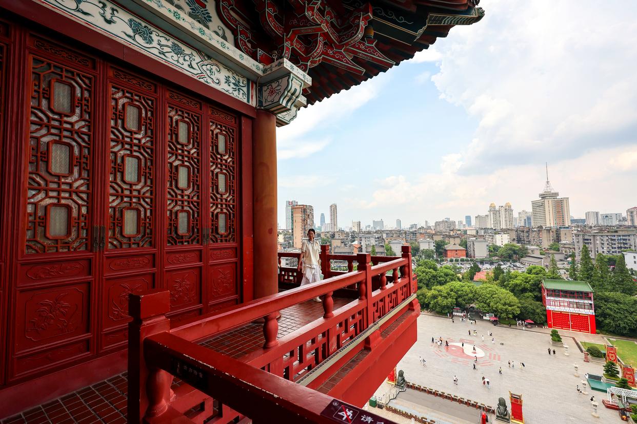 7月7日,游客游览江西南昌滕王阁景区。新华社记者 刘金海 摄
