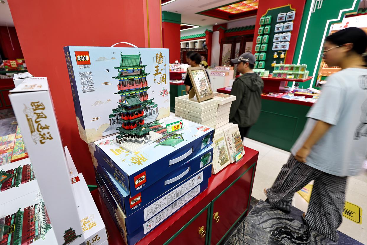 这是7月7日在江西南昌滕王阁景区内拍摄的滕王阁文创产品。新华社记者 刘金海 摄