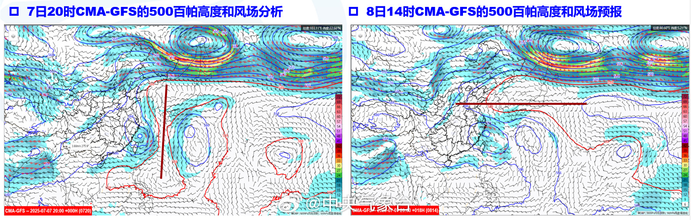 副高轴线由之前的南北向竖型分布转为东西向横型分布,而台风沿着副高外围移动,也就由北上转为西行。实际上夏季的副高位置经常会变化,但因为副高看不见摸不到,大家平时很难感受到,但有了台风这一“显形剂”,我们就可以通过它的“奇葩”走位来感知副高位置的变化。