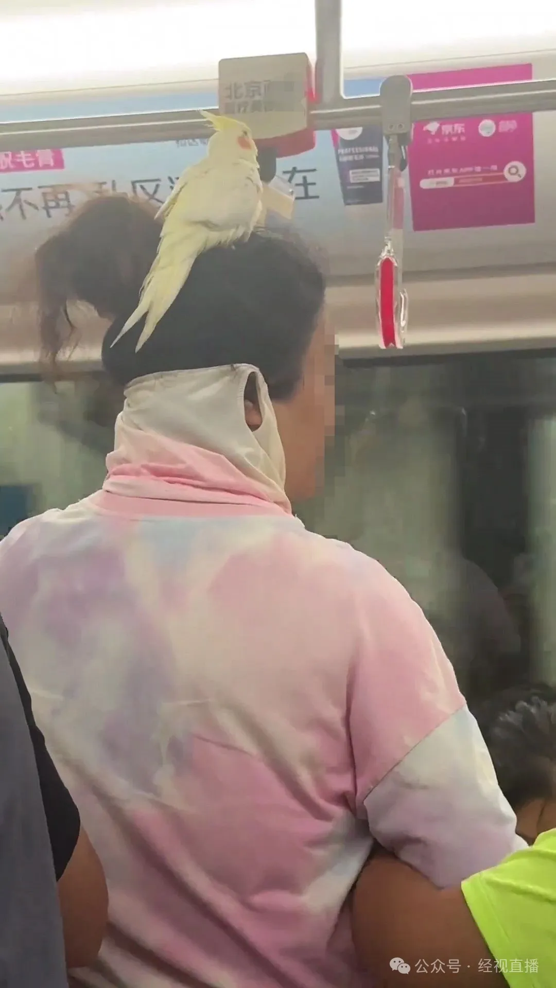 7月7日,有网友发布视频称,在北京地铁内偶遇一名女乘客将鹦鹉置于头顶。鹦鹉乖巧静止,一度被网友误认为是特殊发型,引发热议。