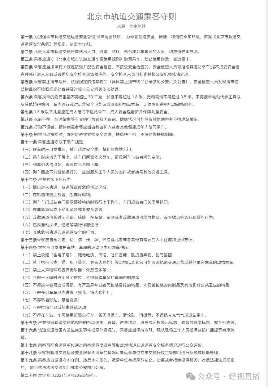 针对此事,记者致电北京地铁客服。工作人员表示,根据《北京市轨道交通乘客守则》,活禽、猫、狗(警犬、导盲犬除外)等宠物及可能影响运营或其他乘客的动物,均禁止携带乘车,“主要是为避免影响行车安全或危及其他乘客安全”。