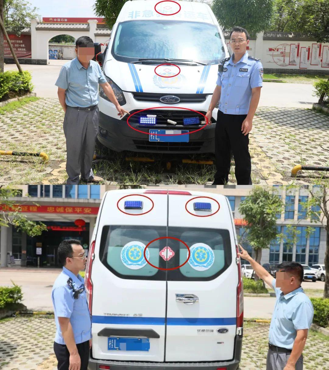 7月4日,百色市公安局交警支队在日常视频巡查中发现,在市人民医院附近有一辆“非急救转运车”存在非法安装标志灯具的嫌疑,遂将当事人黎某传唤至交警直属一大队接受调查。