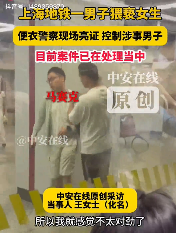 7月7日,上海地铁11号线。上海地铁一男子猥亵女生,便衣警察现场亮证,控制涉事男子,目前案件已在处理当中。