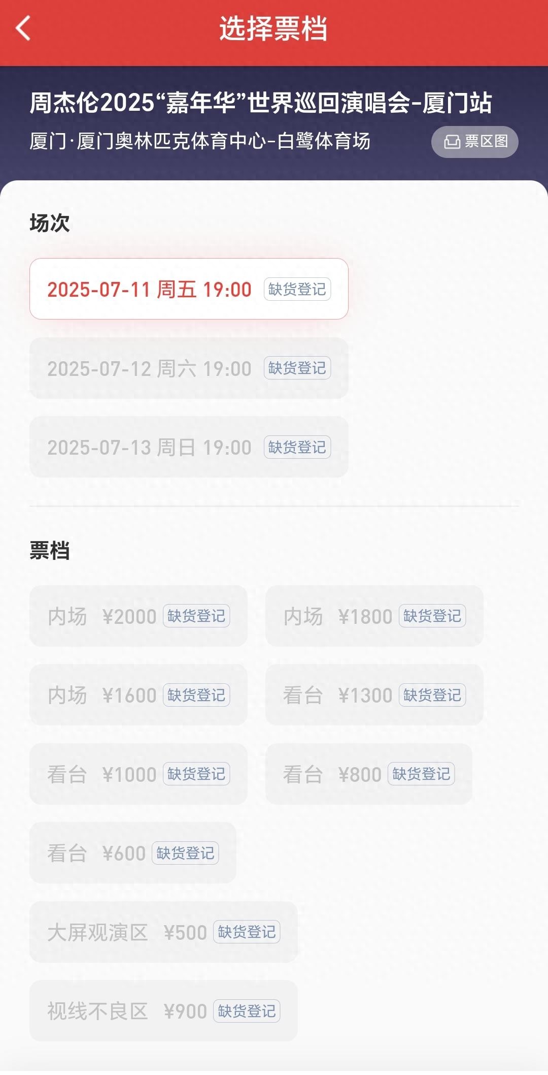 据悉,此次周杰伦厦门站演唱会从7月11日到7月13日,共举办三场。此次演出已经进行了三次开售,内场最高票价2000元,看台最低票价600元。
