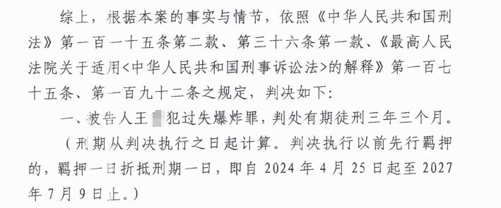 据此,辩护律师认为,该案认定事实不清,王女士不存在过失,不构成过失爆炸罪。