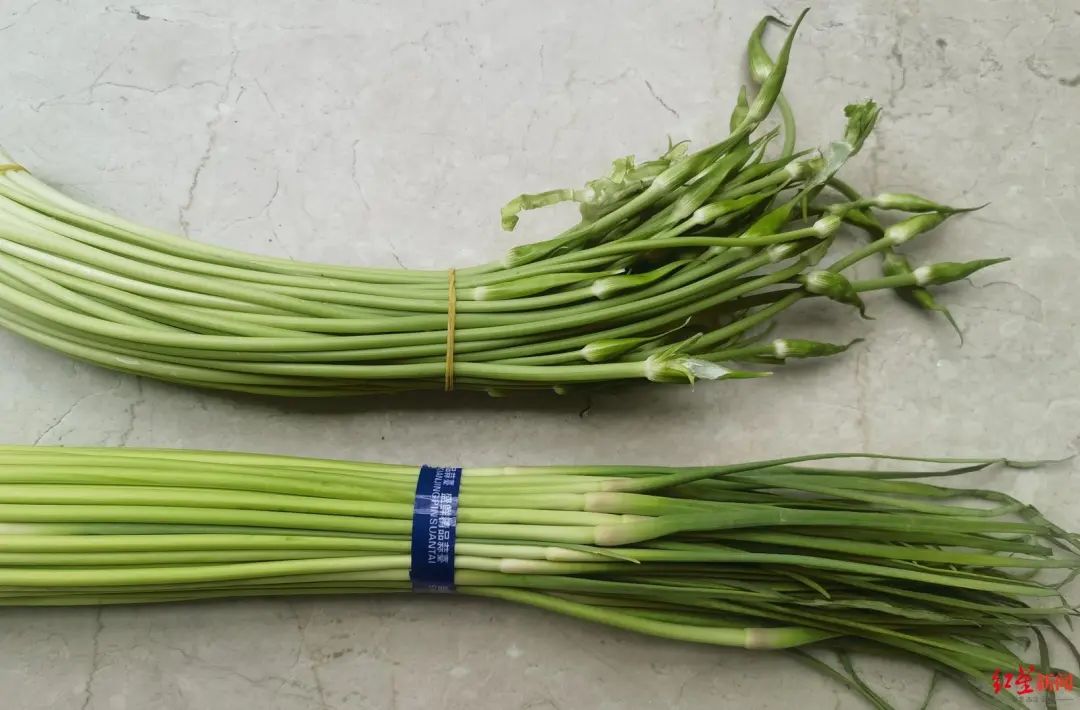 该工作人员介绍,当时视频中这名司机进站时申报所拉的货物是“蒜薹”,后来又改口说是“韭菜薹”,实际上就是韭菜花。红星新闻记者在查询了《鲜活农产品品种目录》后发现,蒜薹的确在免费目录里,而韭菜花不在其中。