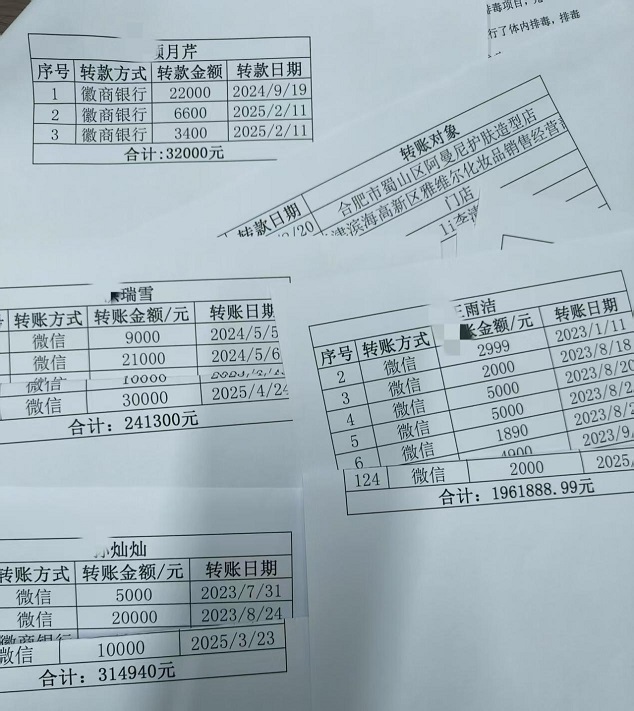 刘新坦言,此后在这家店理疗排毒、灌肠等过程中,多位店员以家庭困难、欠债、没饭吃,公司没有为他们购买五险一金,要想赚钱就需要冲业绩等为由,并多次通过眼泪赚取同情。“我见他们可怜,就几千、几万、几十万的充值,让他们获取业绩,就这样我陆续充了四百多万。”刘新表示,但一年多以来自己发觉,在该店理疗身体并未见身体好转,灌肠更导致肠道一两个月存在问题,针灸拔罐后还落下一些伤疤,“所以我要求将我没消费的三百余万充值款退回却遭到拒绝。”