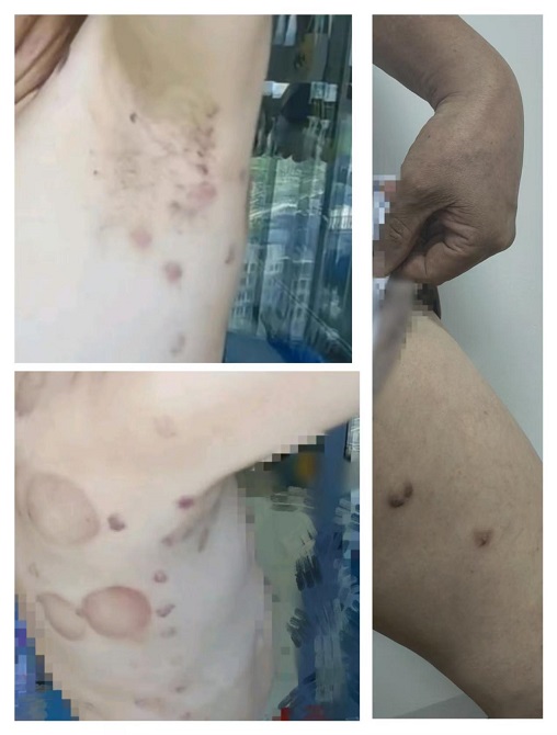 投诉者提供的针刺排毒后及腿部留下疤痕的图片