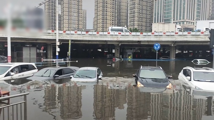 7月9日,石家庄暴雨天气引发关注,强降雨过程导致石家庄多条道路、地道桥积水严重,市民出行受到影响。石家庄桥西区一立交桥下停车场,近百辆汽车被淹。
