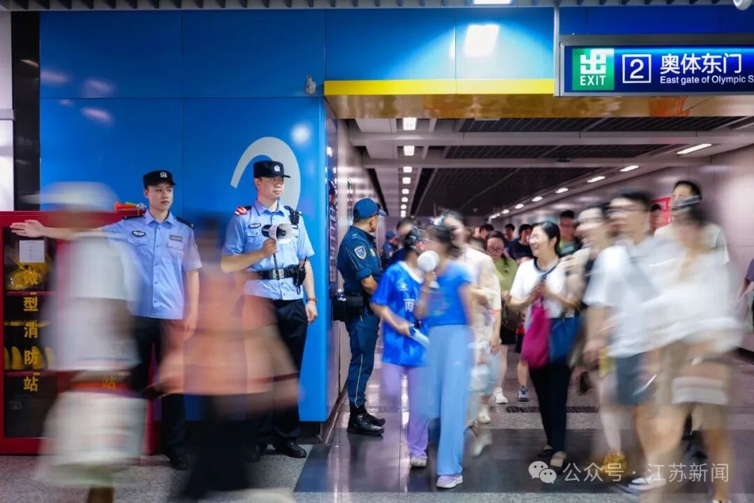 南京公交轨道警方强化“苏超”赛场周边地铁站警力部署,确保球迷有序进出站。
