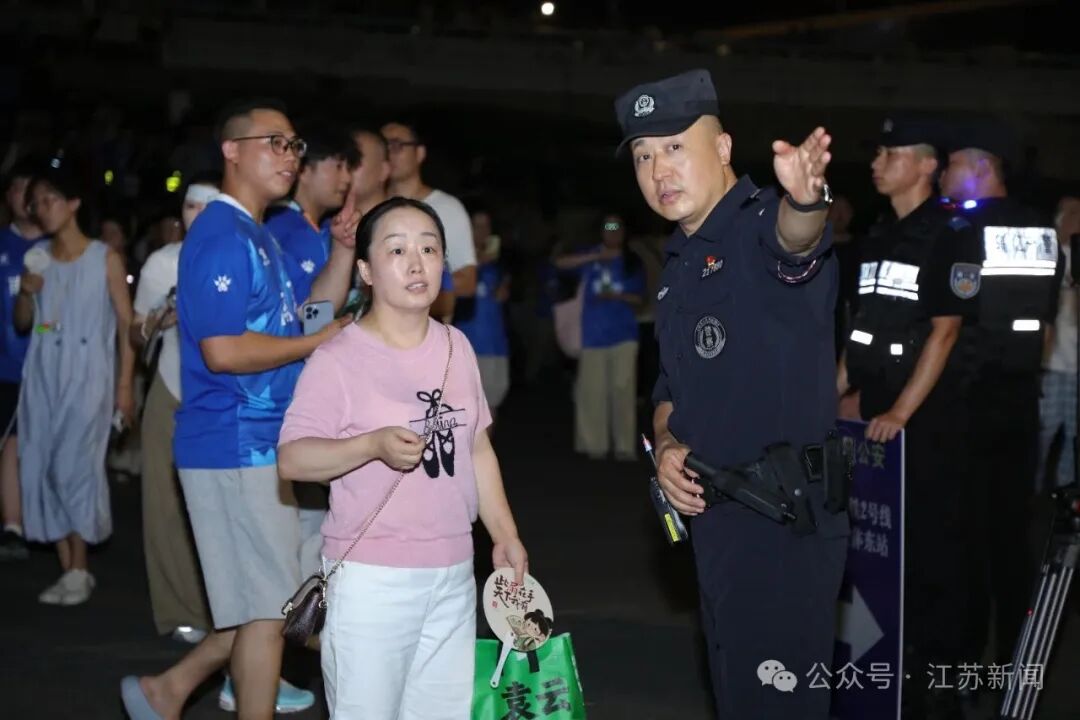 21时30分,终场哨吹响。南京公安在观众离场的高峰时段,对周边道路采取“潮汐式”管控引导措施;对地铁、公交枢纽增派警力维持秩序,出租车、网约车指定区域上下客。不到半个小时,6万多名观众顺利疏散离场。