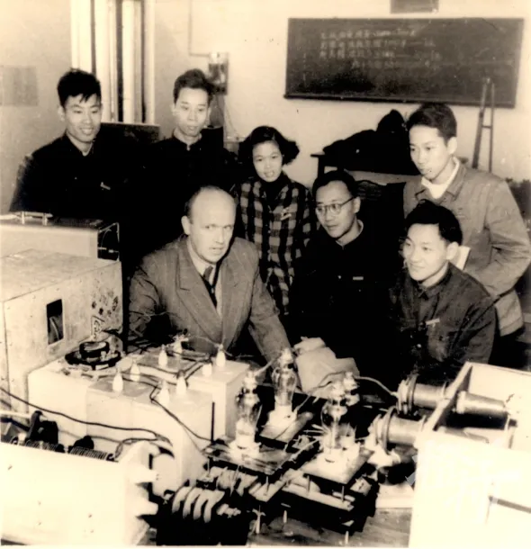 王祖耆教授(右三);筹建成电时,王祖耆第一批来到成都,这张照片就诞生于这段时期 图源:杭州电子科技大学