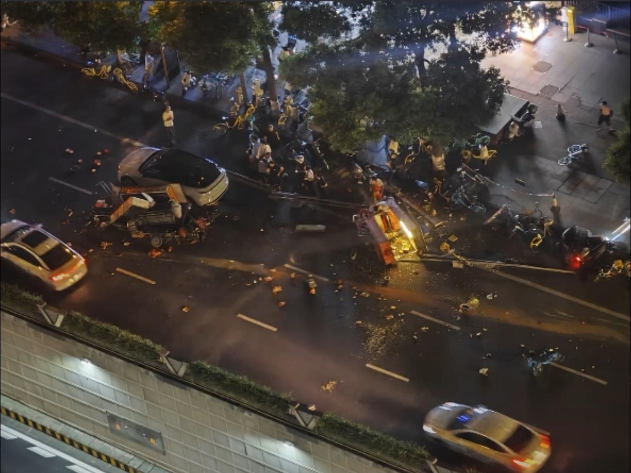 7月10日凌晨,有网友发布视频称,四川成都剑南大道附近发生一起交通事故,有汽车撞到路边摊位。有网友称,有人员在此次事故中受伤。