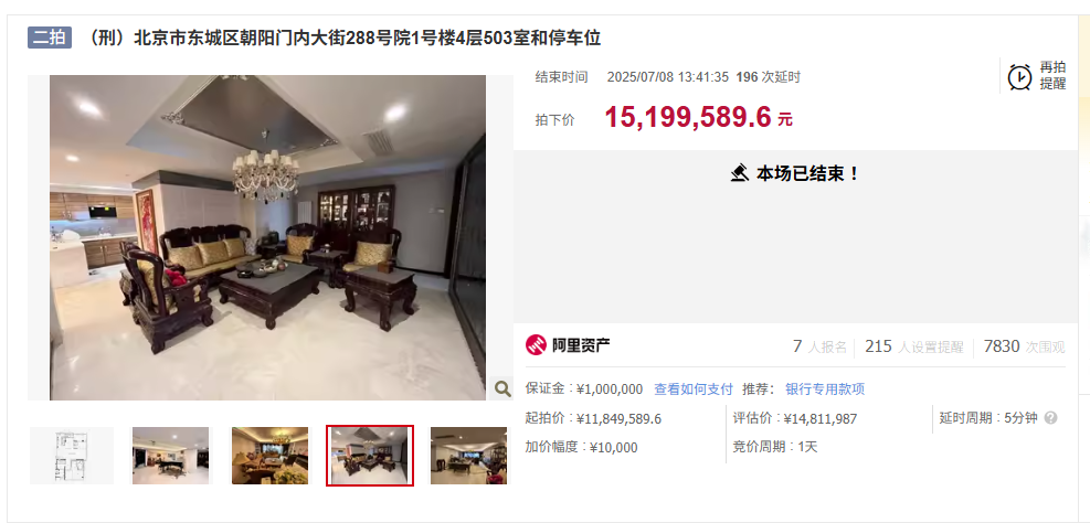 红星资本局7月10日消息,“青海隐形首富”在北京的豪宅和停车位以1520万元被人拍下。
