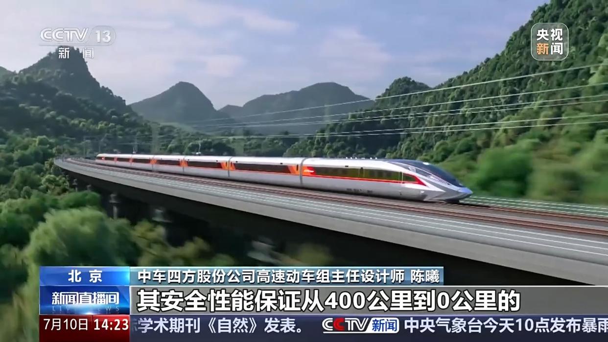 中车四方股份公司高速动车组主任设计师 陈曦:CR450AF瑞龙追梦动车组目前最高试验速度是达到了450公里每小时,其安全性能保证从400公里到0公里的制动距离与目前CR400保持一致。
