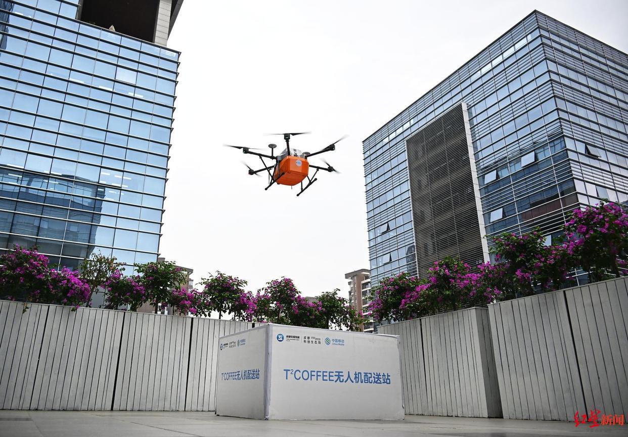 ▲无人机正在配送咖啡 资料图