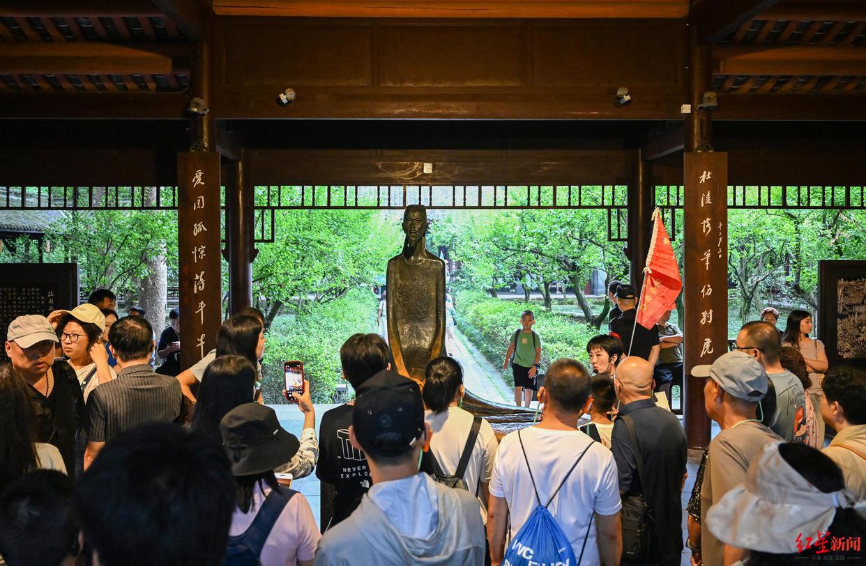 ▲杜甫草堂博物馆,游客参观杜甫像 资料图