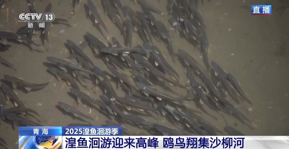 总台记者 王硕:在我身旁就是汇入青海湖的第二大淡水河——沙柳河。每年会有20%到30%的湟鱼经过这里到上游产卵。为了来上一顿肥美的“湟鱼大餐”,已经有众多的水鸟来到了沙柳河河畔,其中数量最多的是棕头鸥,它们在这里欢乐鸣叫、翩翩起舞,随时准备捕捉湟鱼,一场“鱼鸟大战”随时有可能爆发。