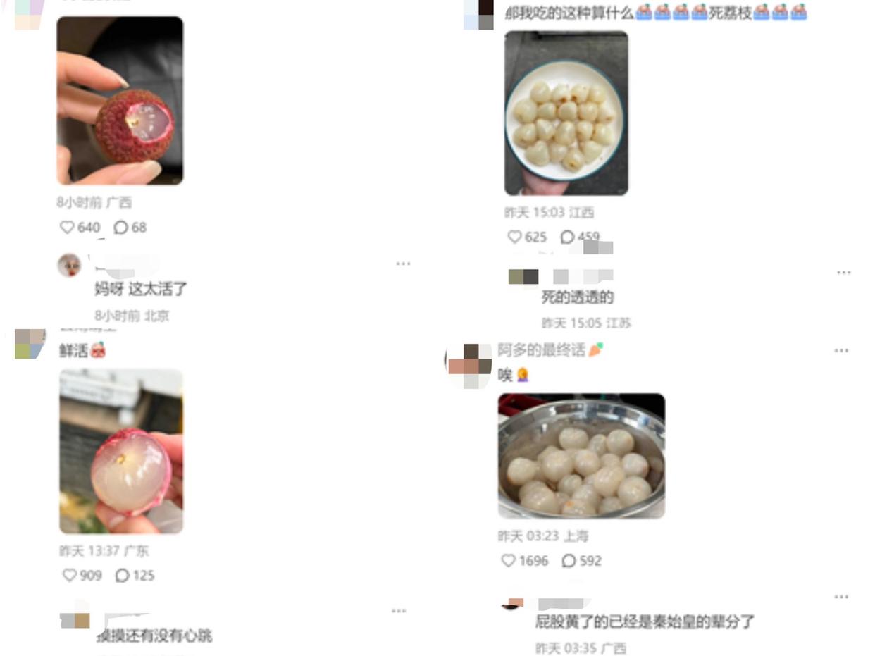 帖子一出,随即引发了热烈讨论。许多网友表示:“原来我吃的是‘死荔枝’?”“我以为以现在的运输技术,全国都能有新鲜荔枝的,原来还是不行的吗?”随后,不少人晒出自己吃的荔枝,让大家来判断“死活”,话题热度持续攀升。